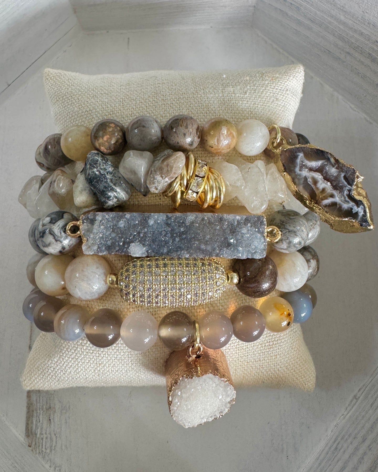 Made with druzy natural stones, faceted beads and sparkle this set can be mixed & matched and worn in lots of different ways to create a variety of looks.