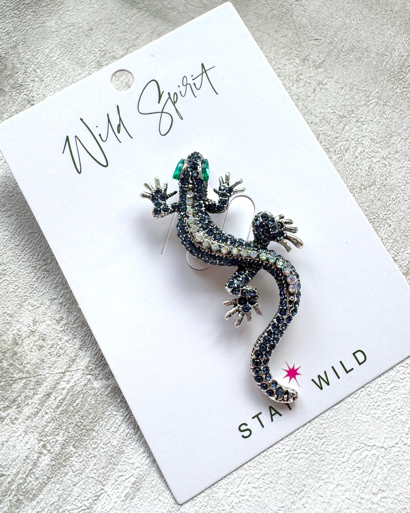 🦎 Gecko-shaped design with navy & clear crystal detailing