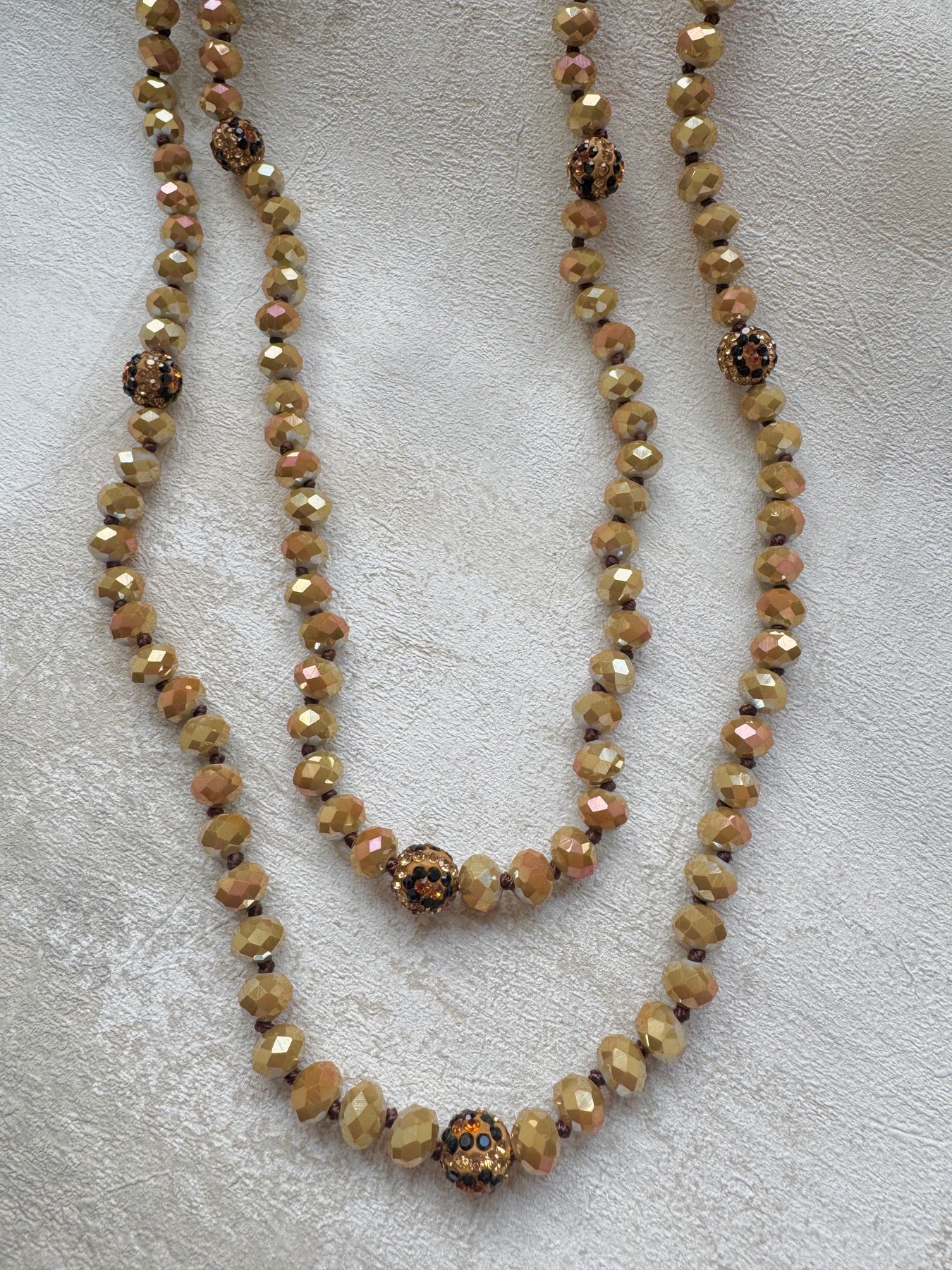 Meet Bella - a statement long necklace designed to elevate any outfit with effortless glamour. Handcrafted with faceted glass beads that glisten beautifully as they catch the light. Bella can be worn in multiple ways to create a short or long layered look. The addition of leopard bling beads brings that signature Wild Spirit sparkle - a bold and playful touch that makes this piece truly special.