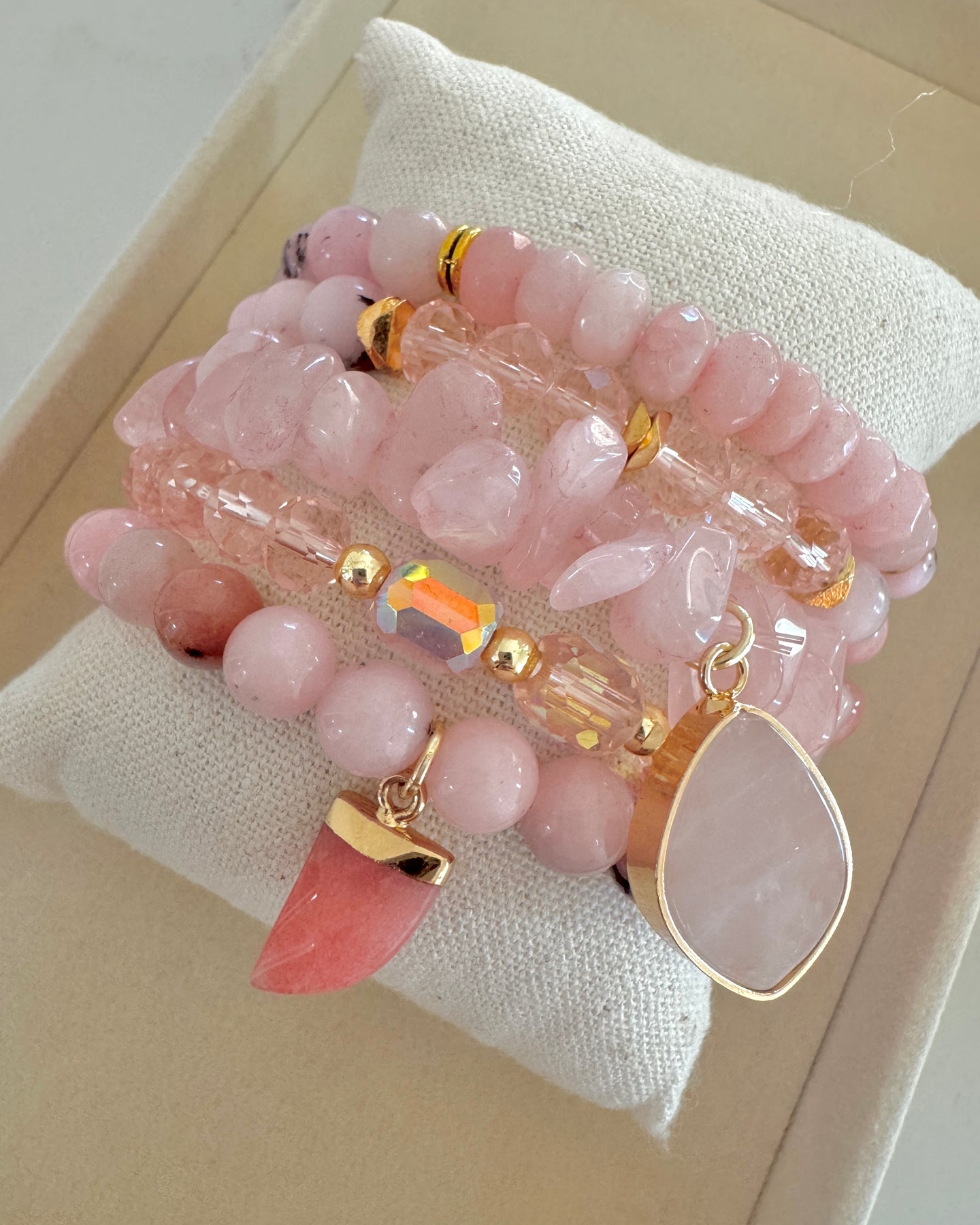 The Blossom Rose Quartz Natural Stone Bracelet Stack