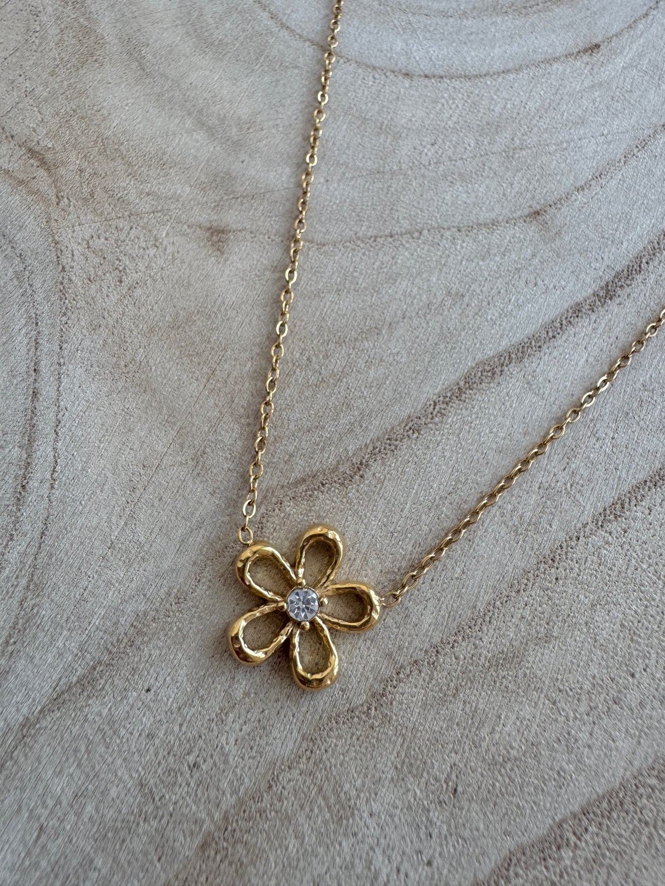 ✨ Flower petal pendant with cubic zirconia centre 💫 Waterproof gold-plated stainless steel 🌿 Lightweight & easy to wear 🌟 Perfect worn solo or layered