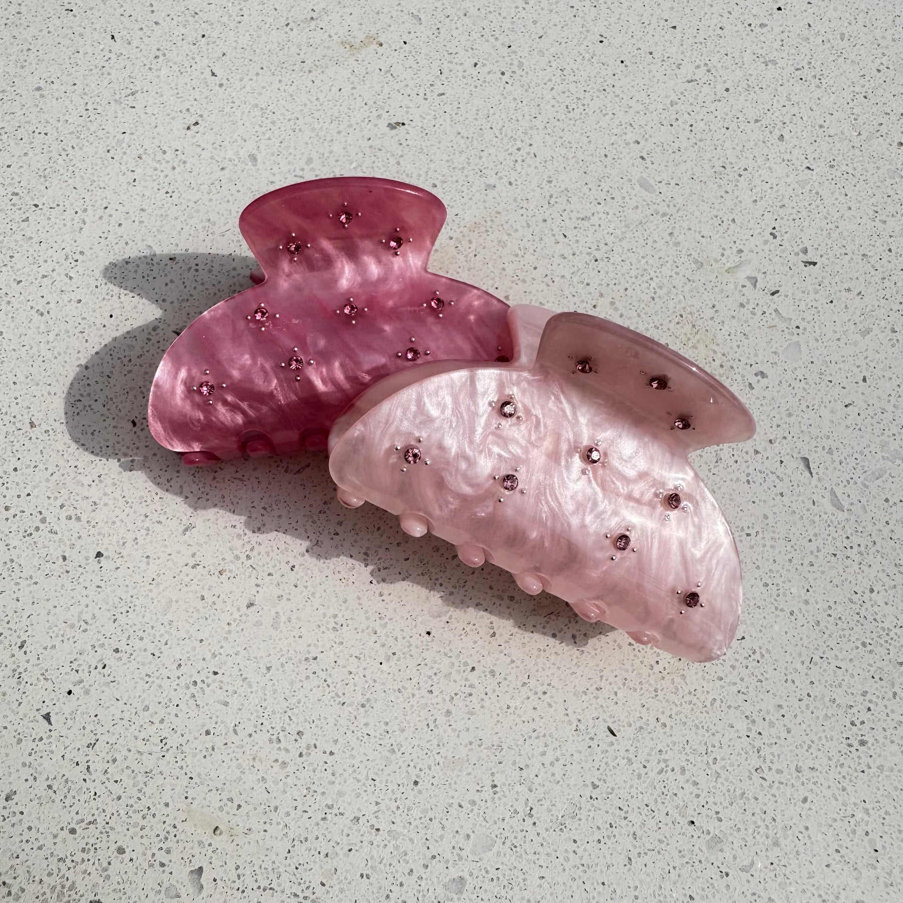 Bring the sparkle with this pack of 6 pink diamanté hair claws, featuring 3 x dark pink and 3 x light pink claws for the perfect balance of bold & soft glam.