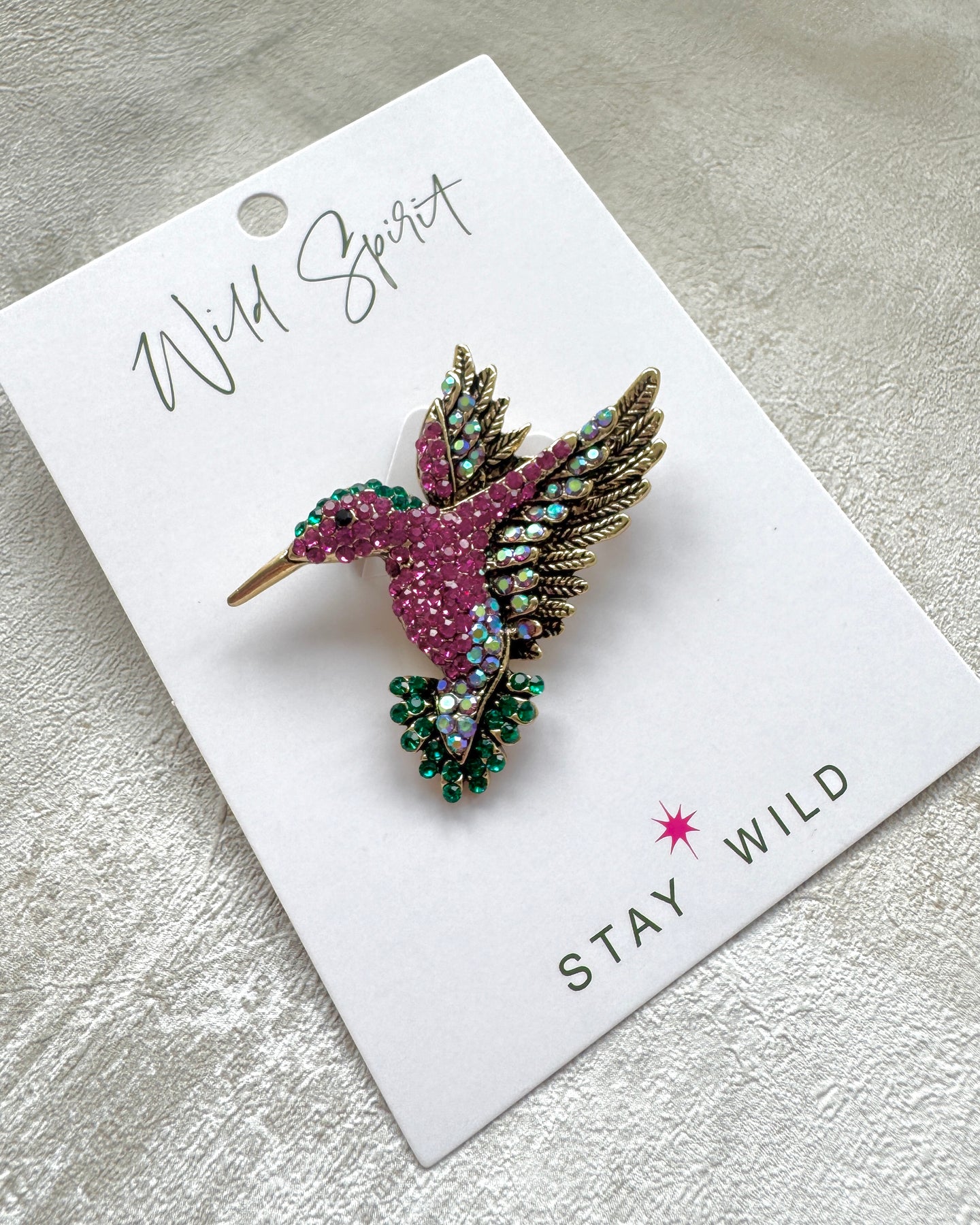 Embrace the elegance and energy of the hummingbird and let your style take flight with a touch of sparkle and sophistication.