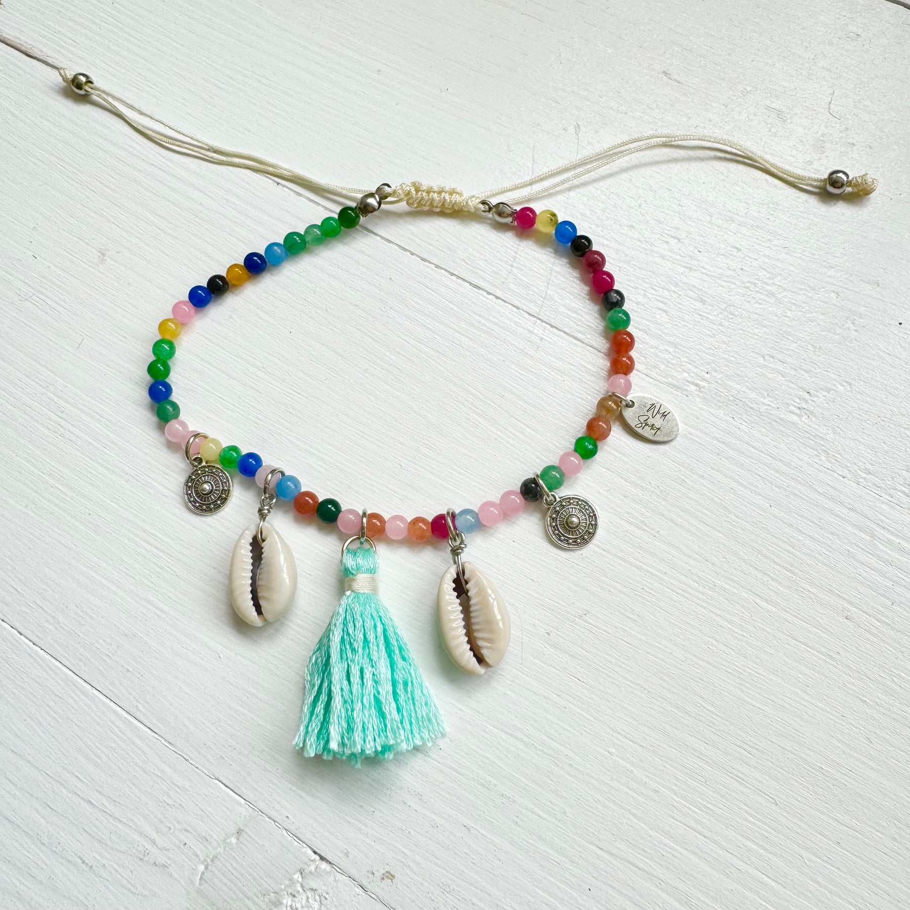 Pretty, boho style anklet made with natural stone multicoloured beads.