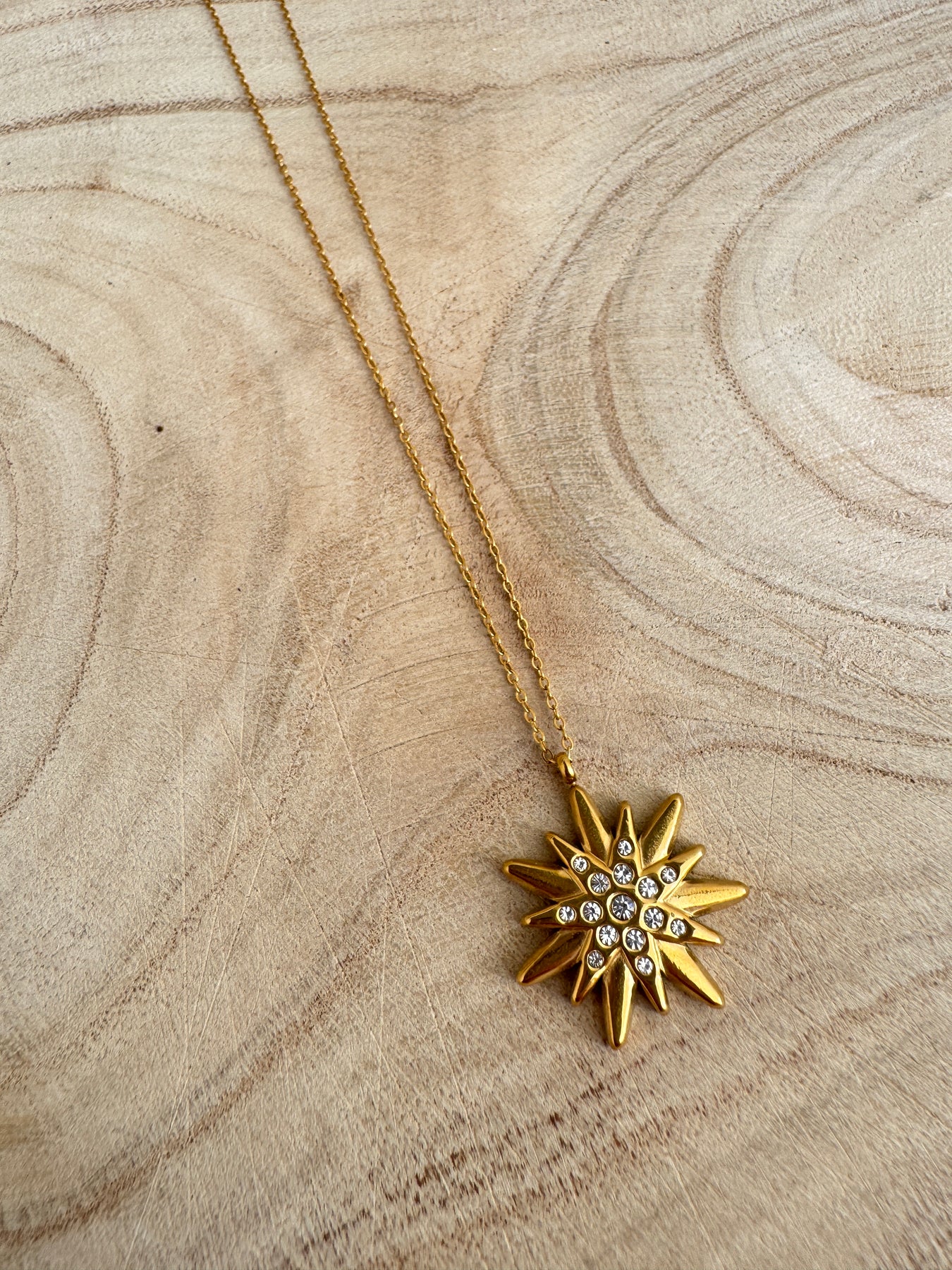 ✨ Crystal-studded star pendant 💫 Waterproof gold-plated stainless steel 🌟 Lightweight, luxe & layer-ready ⚡ Made to match the Starburst Earrings