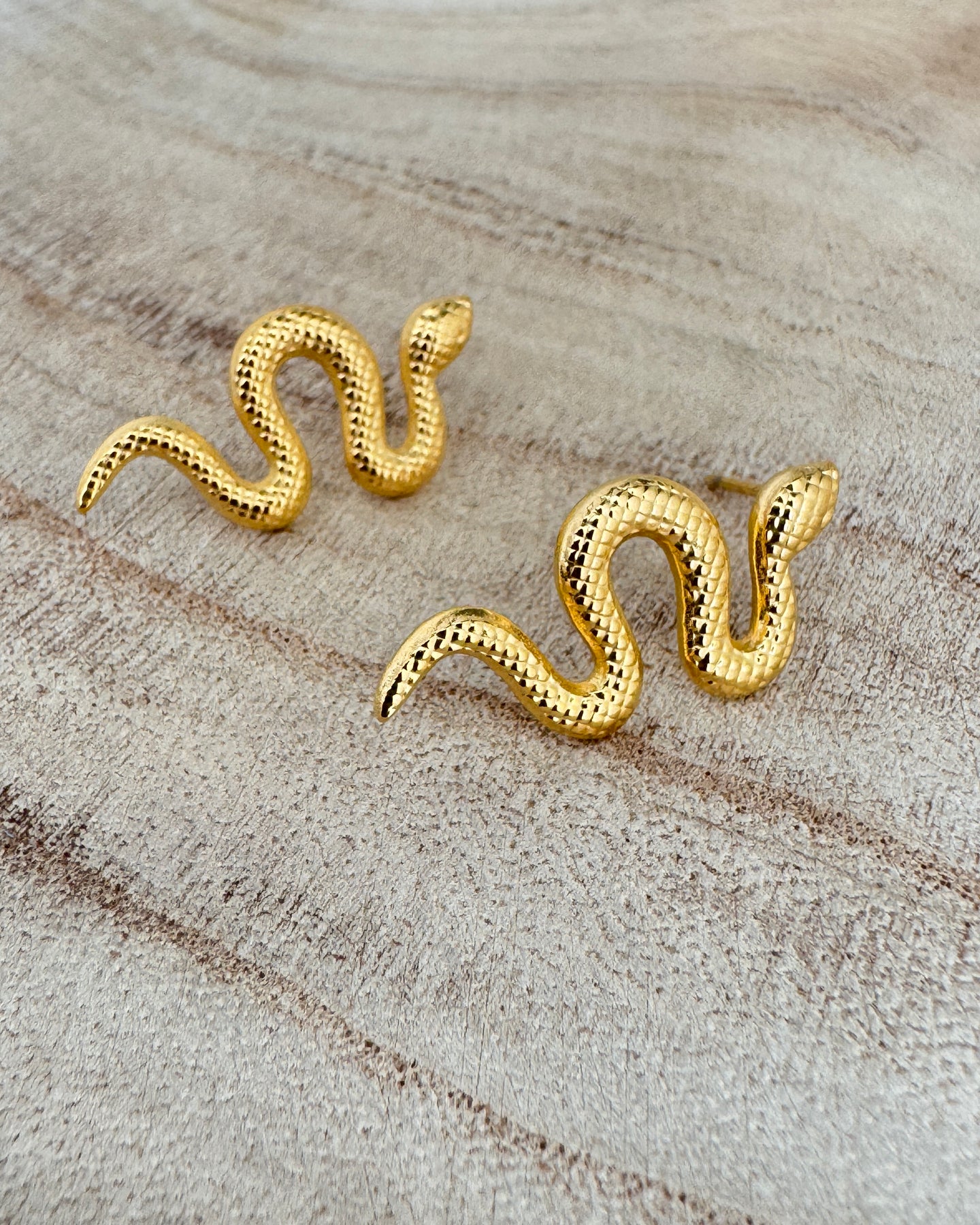 Make a bold statement with these snake stud earrings - perfect for adding a touch of edgy glamour to your look.