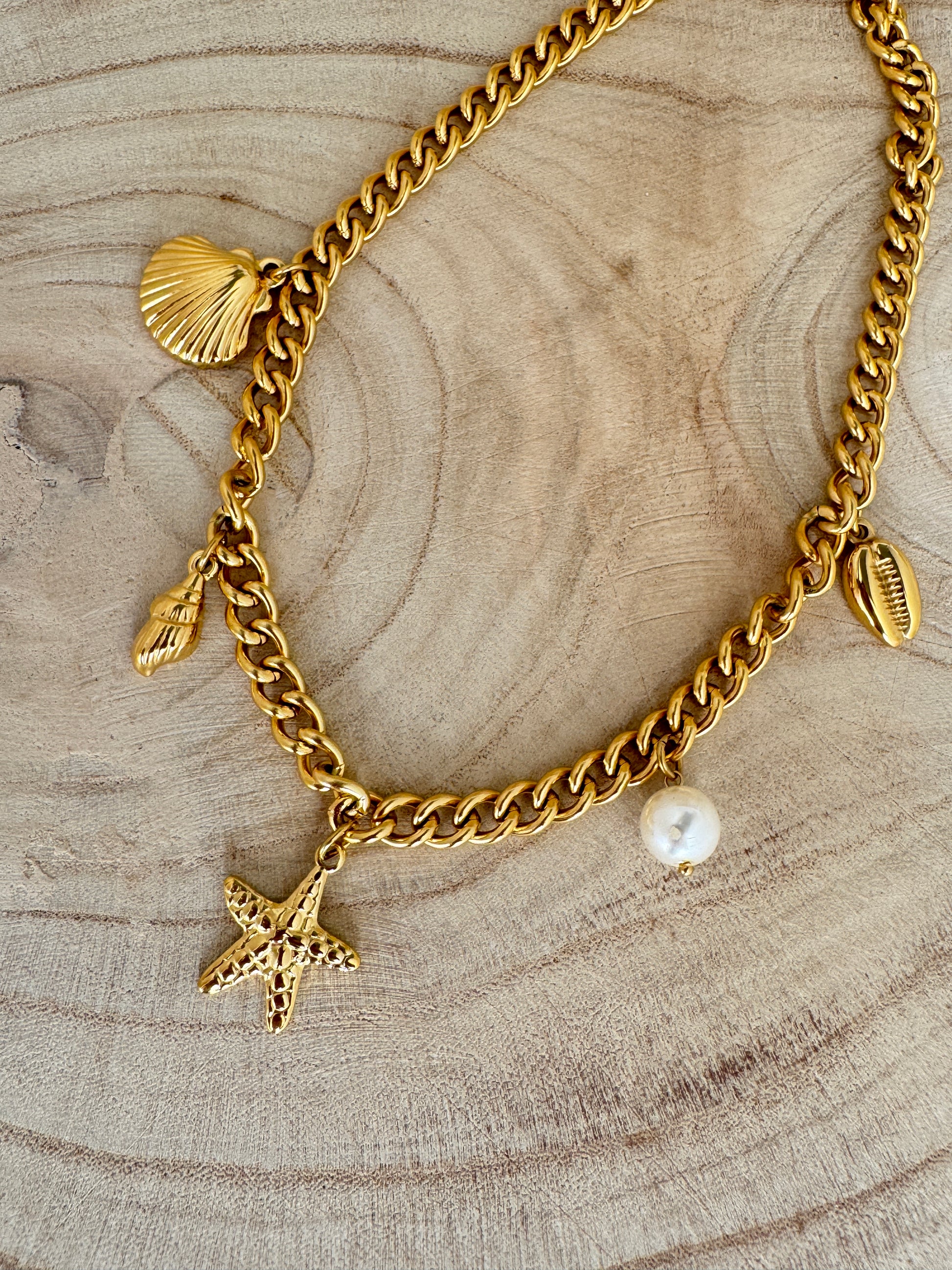 Make a splash with our Waterproof 18K Gold Beachcomber Charm Necklace!