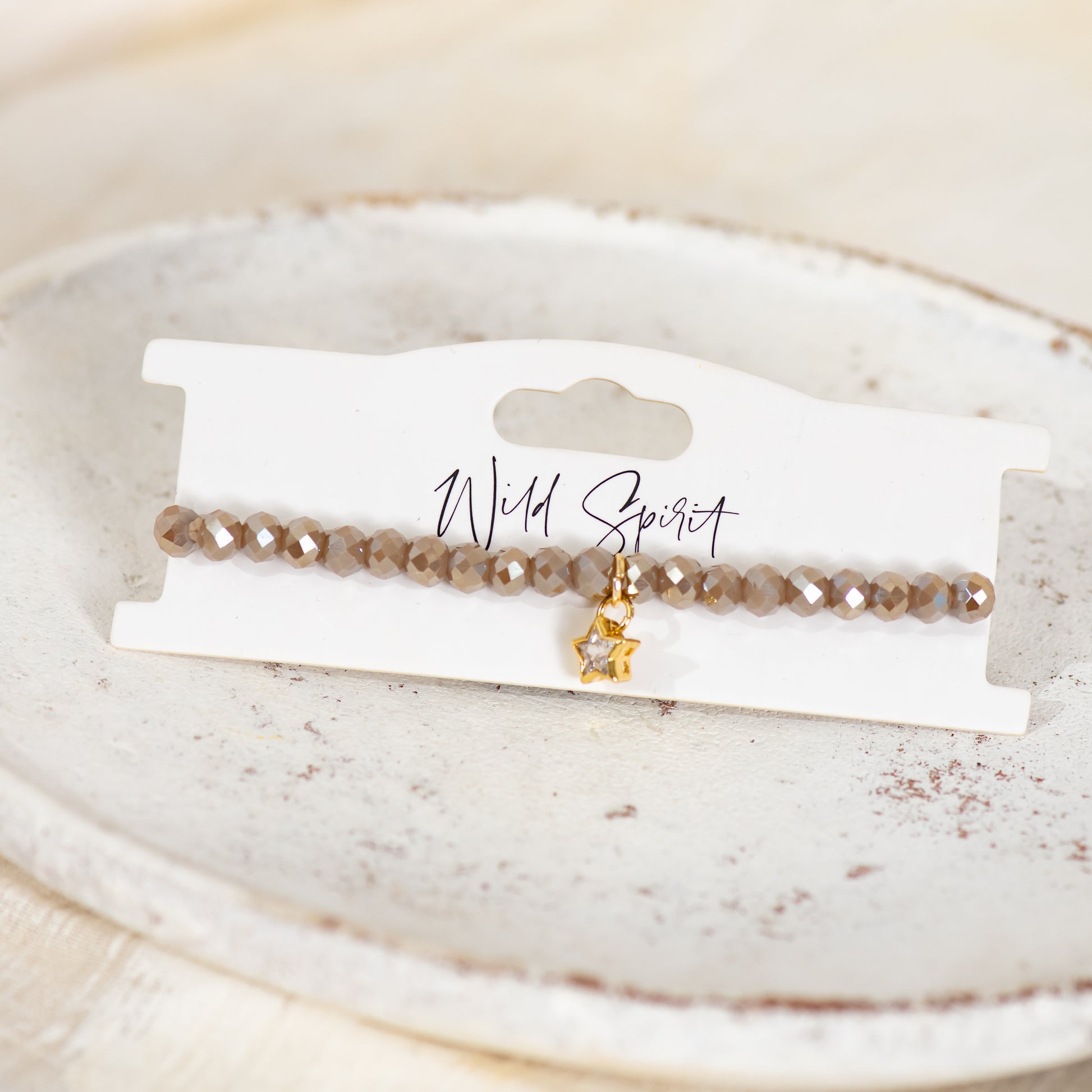 Guided by light, grounded in style. The Twilight Charm Bracelet features shimmering grey crystal beads with a delicate star charm — a symbol of hope, guidance, and inspiration.