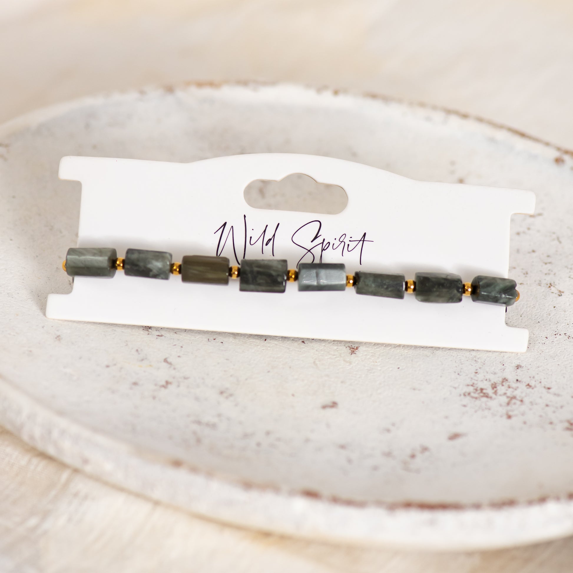 The Rock Bracelet is a laid-back luxe essential – crafted from polished labradorite tube beads, accented with subtle gold spacer details for a hint of shimmer.