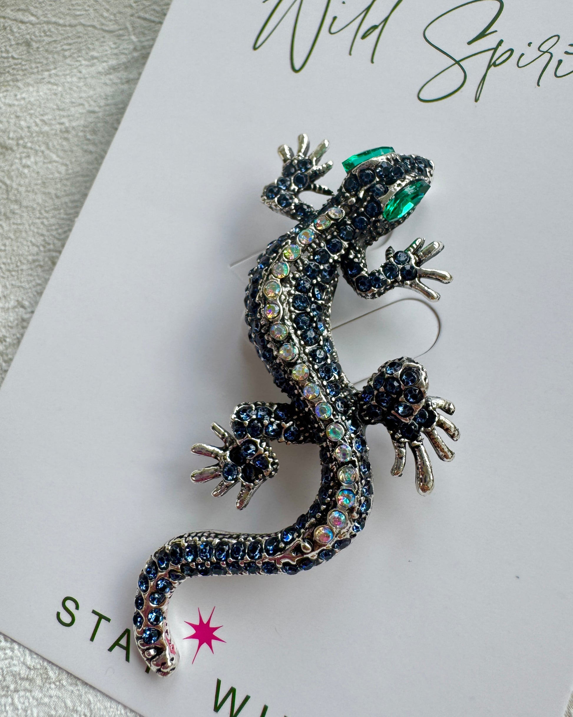 🦎 Gecko-shaped design with navy & clear crystal detailing